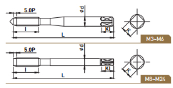 • 관통 구멍 가공용으로써 탄소강, 합금강 및 비철금속 가공에 적합