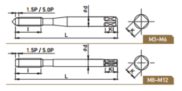 | EDP. No. | 호칭치수 | 등급 | L | I | d | K | KI | 날수 | 딘타입 DiN Type |