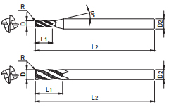 | EDP. No. | D | R | L1 | L2 | D2 | FLUTE |